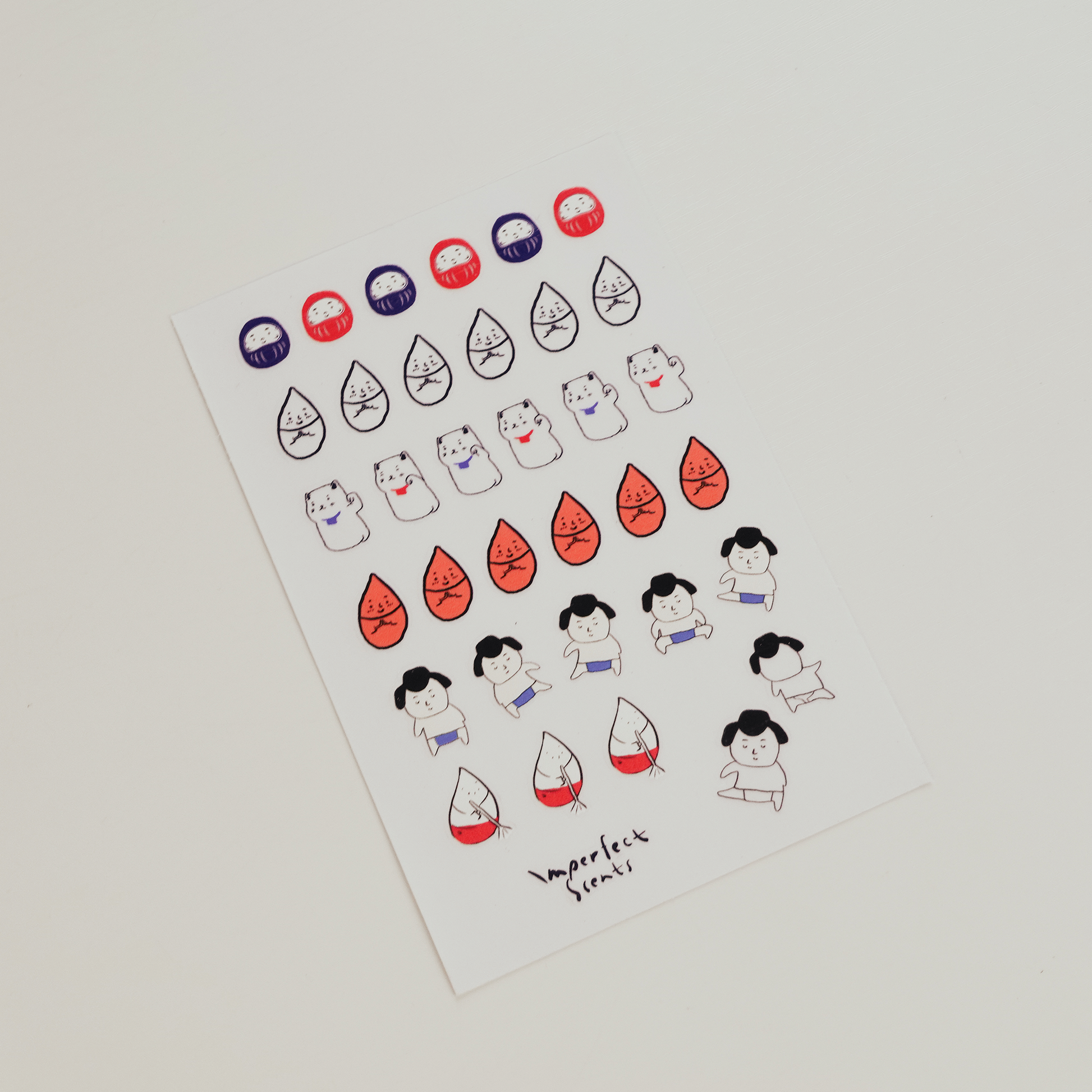Waterproof clear vinyl stickers with lovely raised accents, featuring our original art.