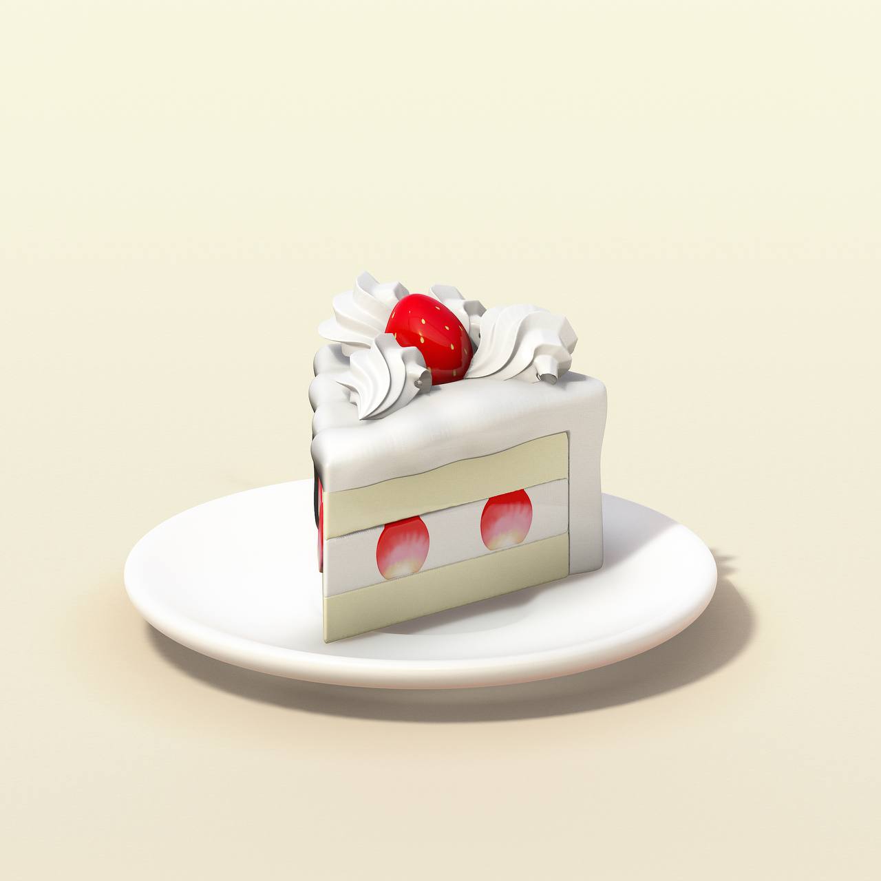 A fluffy staple from the depachika, gleaming with a single glazed strawberry topping.